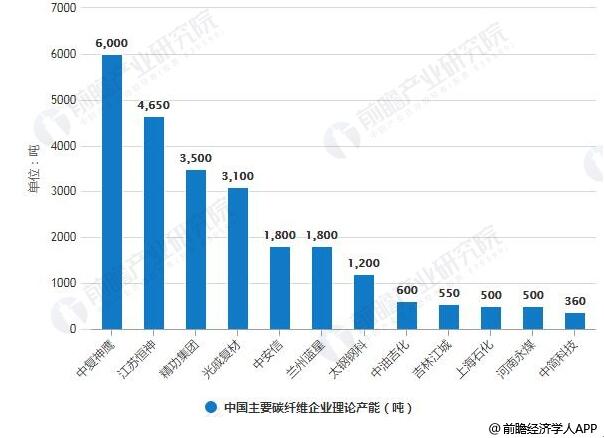 国内从事碳纤维复合材料研制及生产的企业较多,大多从事小丝束,缺乏竞争力,行业普遍处于亏损状态。2017年,我国碳纤维理论产能达2.60万吨。其中,产能千吨以上的公司仅有7家,分别是中复神鹰、江苏恒神、精工集团、光威复材、中安信、兰州蓝星、太钢钢科。中复神鹰产能最高,达6000吨。