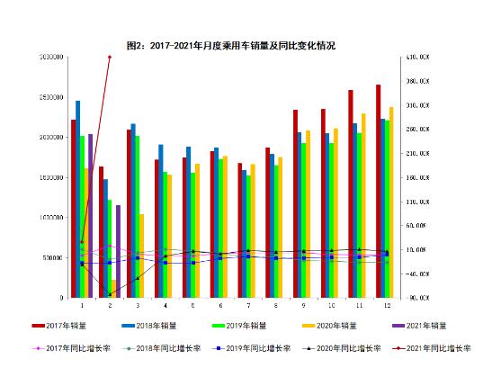 1-2月,乘用车产销分别完成307.2万辆和320.1万辆,同比分别增长87%和74%。分车型看,轿车产销分别完成144万辆和150.2万辆,同比分别增长93.4%和79.7%;SUV产销分别完成145.8万辆和153.7万辆,同比分别增长84.1%和72.8%;MPV产销分别完成13.3万辆和12.8万辆,同比分别增长68.3%和42.1%;交叉型乘用车产销分别完成4.1万辆和3.3万辆,同比分别增长52%和38.1%。